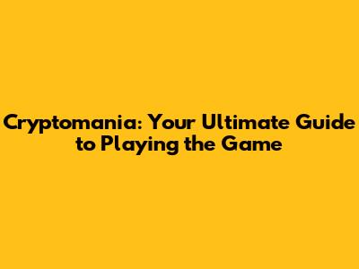 Cryptomania: Your Ultimate Guide To Playing The Game