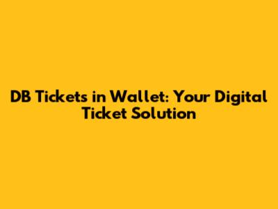 DB Tickets In Wallet: Your Digital Ticket Solution