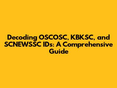 Decoding OSCOSC, KBKSC, And SCNEWSSC IDs: A Comprehensive Guide