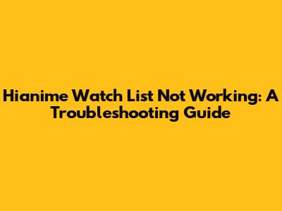 Hianime Watch List Troubles: Common Issues & Solutions