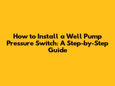 How To Install A Well Pump Pressure Switch