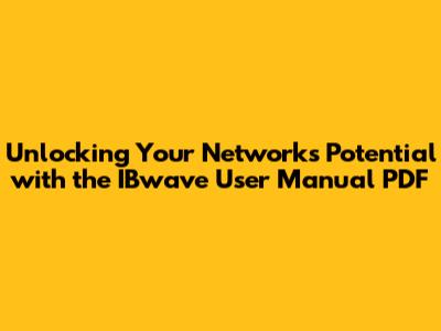Why the IBwave User Manual PDF is Your New Best Friend
