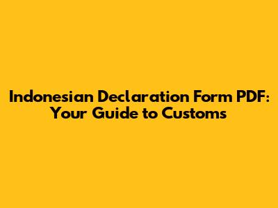 Indonesian Declaration Form PDF: Your Guide To Customs