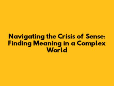 Navigating The Crisis Of Sense: Finding Meaning In A Complex World
