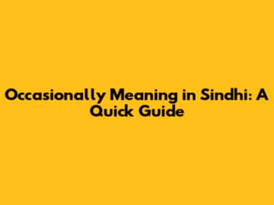 Occasionally Meaning In Sindhi: A Quick Guide