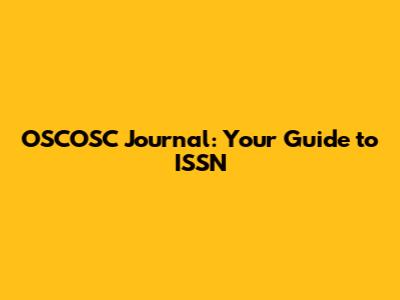 OSCOSC Journal: Your Guide To ISSN