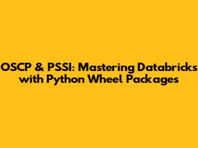 OSCP & PSSI: Databricks, Python Wheels, And Deployment