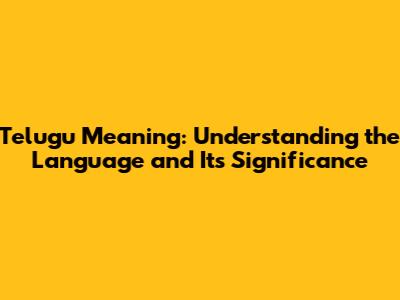 Telugu Meaning: Understanding The Language And Its Significance