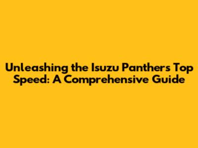 Unleashing The Isuzu Panther's Top Speed: A Comprehensive Guide
