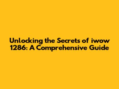 Unlocking The Secrets Of Iwow 1286: A Comprehensive Guide