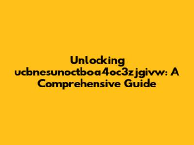 Unlocking Ucbnesunoctboa4oc3zjgivw: A Comprehensive Guide