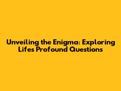 Unveiling The Enigma: Exploring Life's Profound Questions
