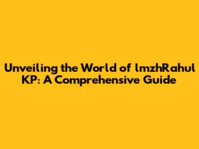 Unveiling The World Of LmzhRahul KP: A Comprehensive Guide